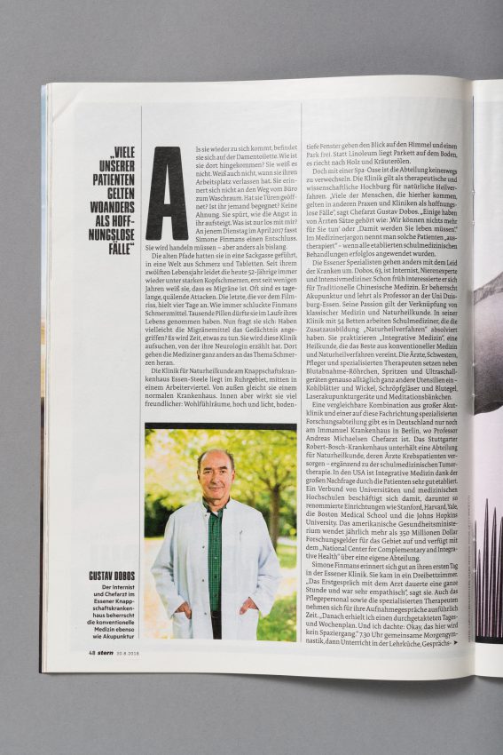 Blutegel, Schröpfen, Kohlwickel, Kaltwassergüsse, Yoga – wenn klassische Medizin allein bei chronischen Schmerzen nicht mehr hilft. Eine Reportage für den stern.